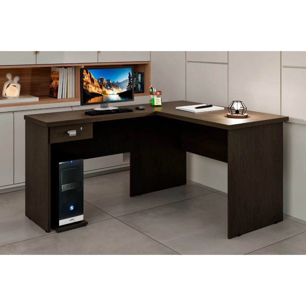 Escrivaninha Em L Escritório Trabalho Estudo Gamer 1 Gaveta Com Chave - Envio Imediato