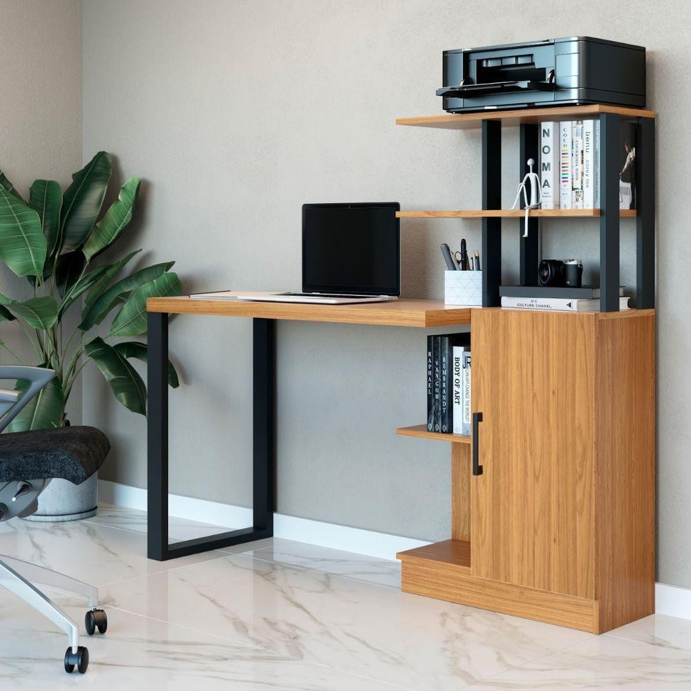 Escrivaninha em MDF 5 Prateleiras 1 Porta 135 cm Freijó/Preto Fosco Pradel Dalla Costa