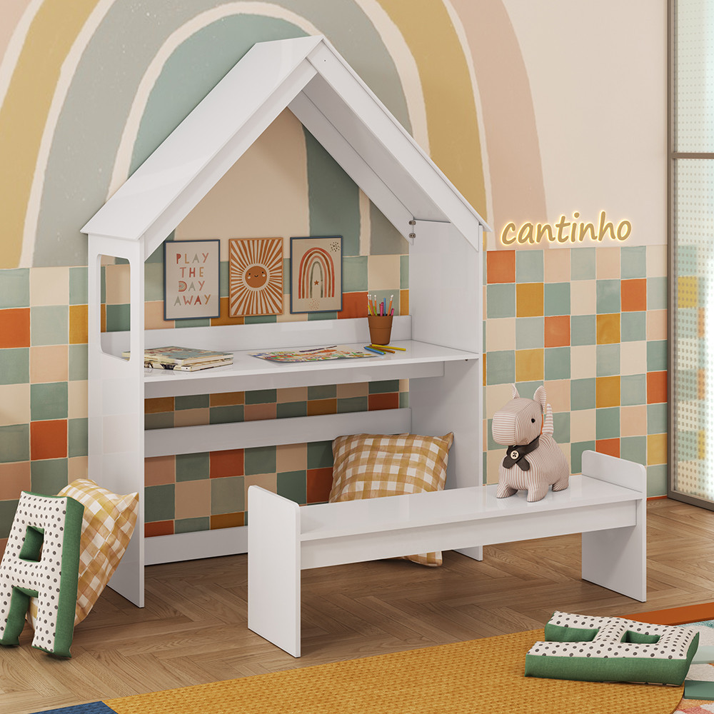 Escrivaninha Infantil Montessoriana Casinha em MDF Popy Móveis Peroba