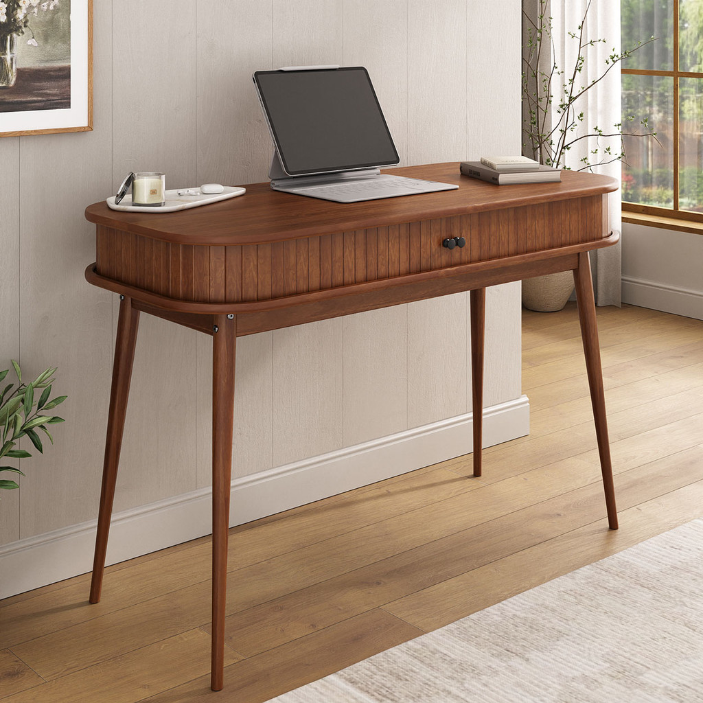 Escrivaninha Madeira Porta Rolltop Versátil Mesa Escritório Jari Castanho Verniz
