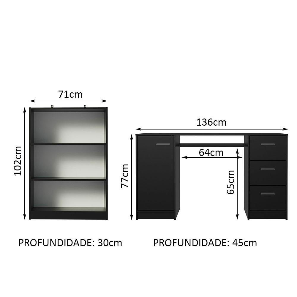 Escrivaninha Madesa Alaska + Estante Livreiro 6907 - Preto