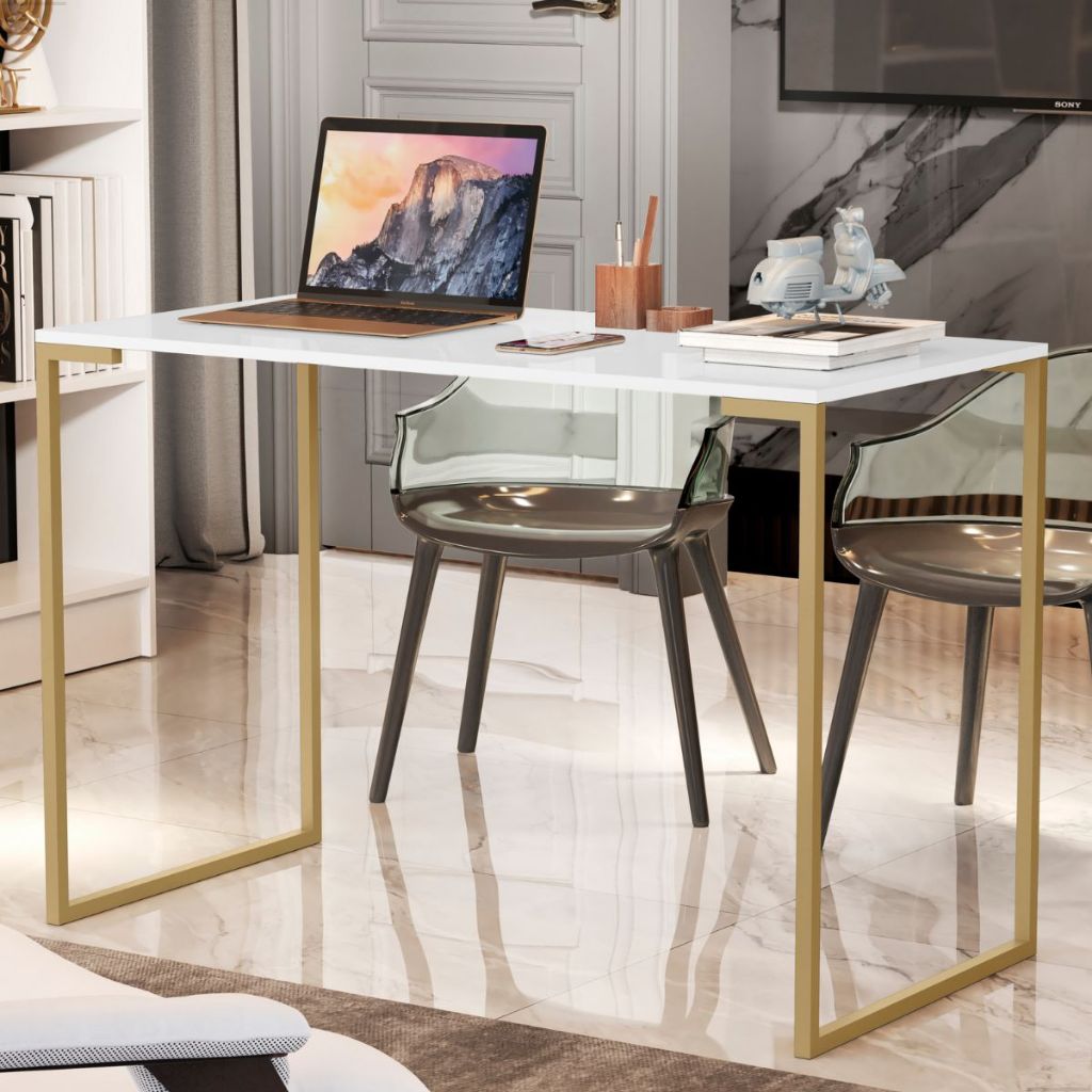 Escrivaninha Mesa de Computador Industrial Para Quarto Home Office 90cm Pes Metal Dourado