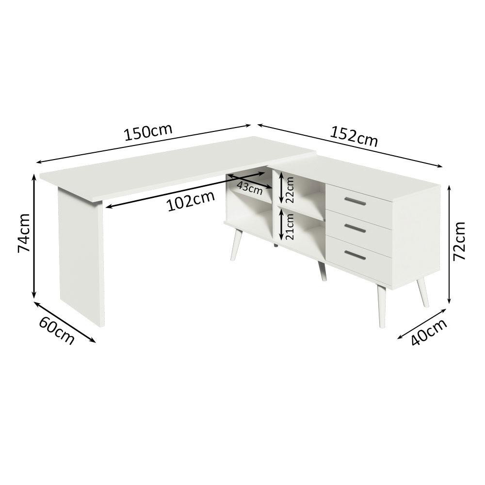 Escrivaninha Mesa de Escritório de Canto 3 Gavetas Lisboa Madesa