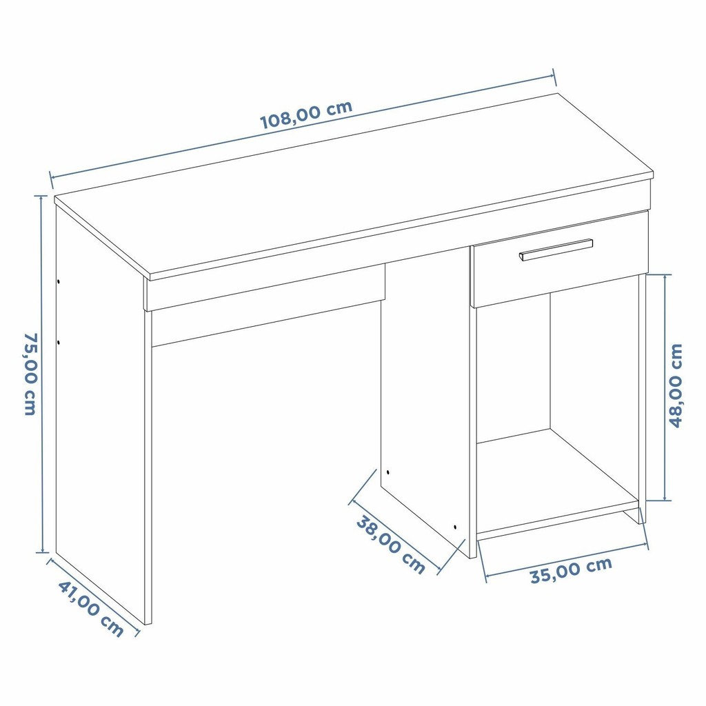A Mesa Office NT 2070 da Notável Móveis é o produto ideal para seu quarto ou escritório, um produto compacto e funcional para lhe ajudar nos dias mais atarefados. Conta com 1 Gaveta e Espaço para Gabinete, tornando-se uma mesa multifuncional, podendo ser usada tanto para notbooks quanto para computadores de mesa. Este produto é configurado para ser montado para um único lado específico, ou seja, não possui montagem flex. 1 GAVETA, ESPAÇO PARA GABINETE, PRODUTO COMPACTO, FACIL MONTAGEM Estilo: Clássico Peso (kg): 16.9 Dobrável: Não Garantia: 03 Meses Altura (cm): 75 Acabamento: Pintura UV Largura (cm): 108 Cor da Base: Preto Cor do Tampo: Preto Possui Vidro: Não Possui Nichos: Sim Possui Portas: Não Pés Reguláveis: Não Possui Gavetas: Sim Possui Rodízio: Não Suporta Até (kg): 26 Modelo Infantil: Não Possui Espelhos: Não Profundidade (cm): 41 Escala de Brilho: Fosco Gaveta com Chave: Não Material do Tampo: MDP Ambiente Principal: Escritório Espessura do Tampo (mm): 15 Material Principal: MDP Possui Passa Cabos: Não Possui Prateleiras: Não Sapatas Niveladoras: Sim Possui Porta Objetos: Não Material da Estrutura: MDP/HDF Peso Máximo por Gaveta: 5 Formato da Escrivaninha: Retangular Possui Suporte para CPU: Sim Possui Borda Arredondada: Não Possui Suporte para Teclado: Não Tipo de Corrediça da Gaveta: Metálica Material do Puxador da Gaveta: Alumínio Acompanha Manual de Instalação: Sim Possui Acabamento na Parte de Trás: Sim Marca: Notável Móveis Cor Interna: Preto Cor: Preto Tx Cor do Produto: Preto TX Itens Inclusos: 1 Mesa, Kit Ferragens e Manual de Montagem Cor Predominante: Preto Linha ou Coleção: 2022 Quantidade de Gavetas: 01 Gaveta