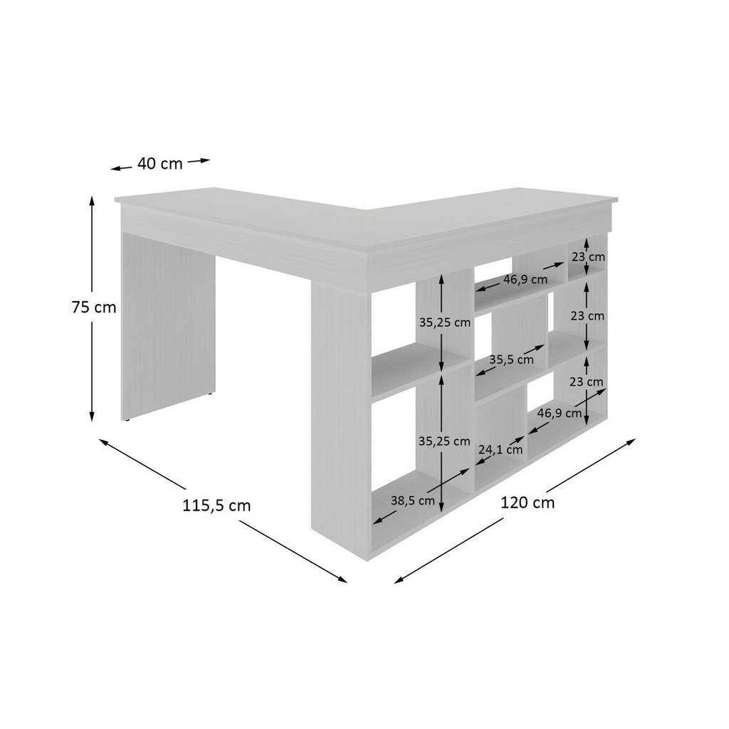 Escrivaninha Mesa Escritório 115,5x120cm em L 8 Nichos Montecello Yescasa Branco