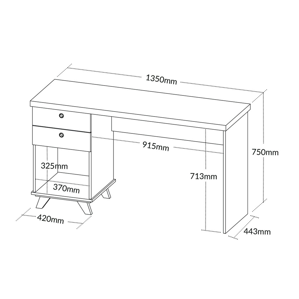 Escrivaninha Mesa Escritório 135cm Retrô 2 Gavetas Sky Home Office Olmo/Branco