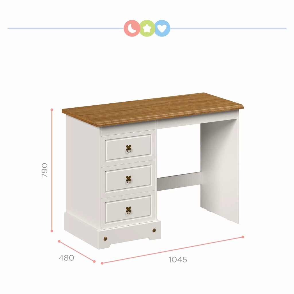 Escrivaninha Mesa Escritório 3 Gavetas com Tampo em Madeira Maciça Smile