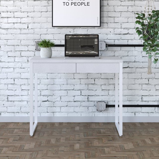 Escrivaninha Mesa Escritório 90Cm 2 Gavetas Kuadra Branco/Branco Chess