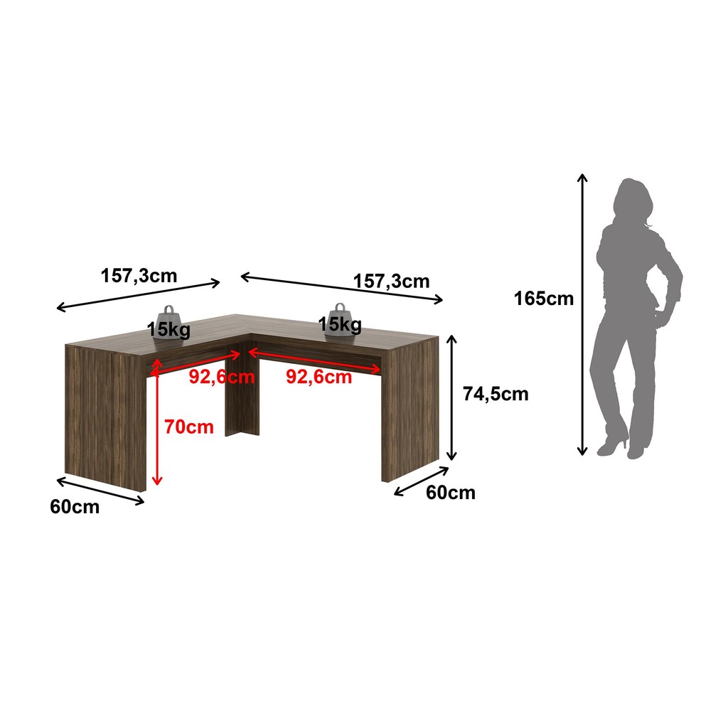 Escrivaninha Mesa Escritório Angular em L 157,3x157,3cm ME4116 Nogal