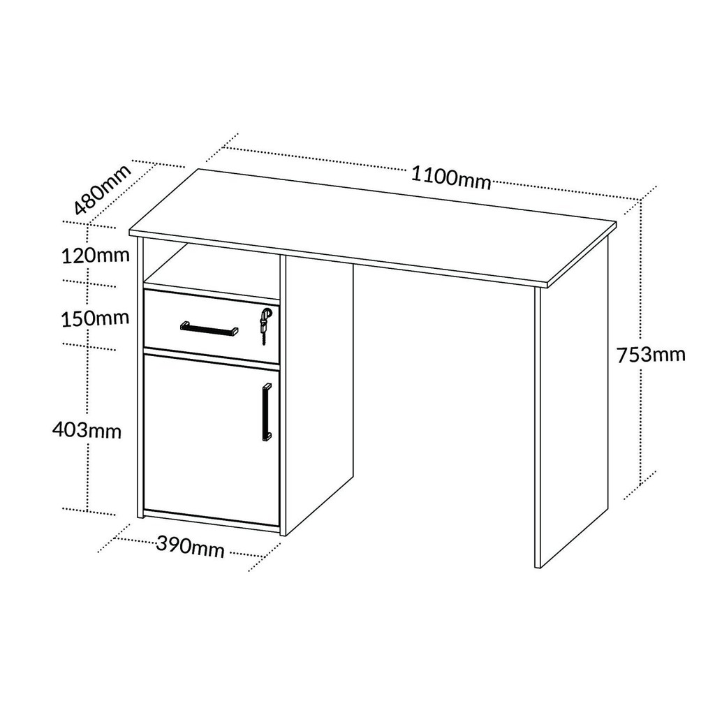 Escrivaninha Mesa Escritório Compacta Para Home Office Com 1 Porta 1 Gaveta Com Chave E 1 Nicho 110cm Hall