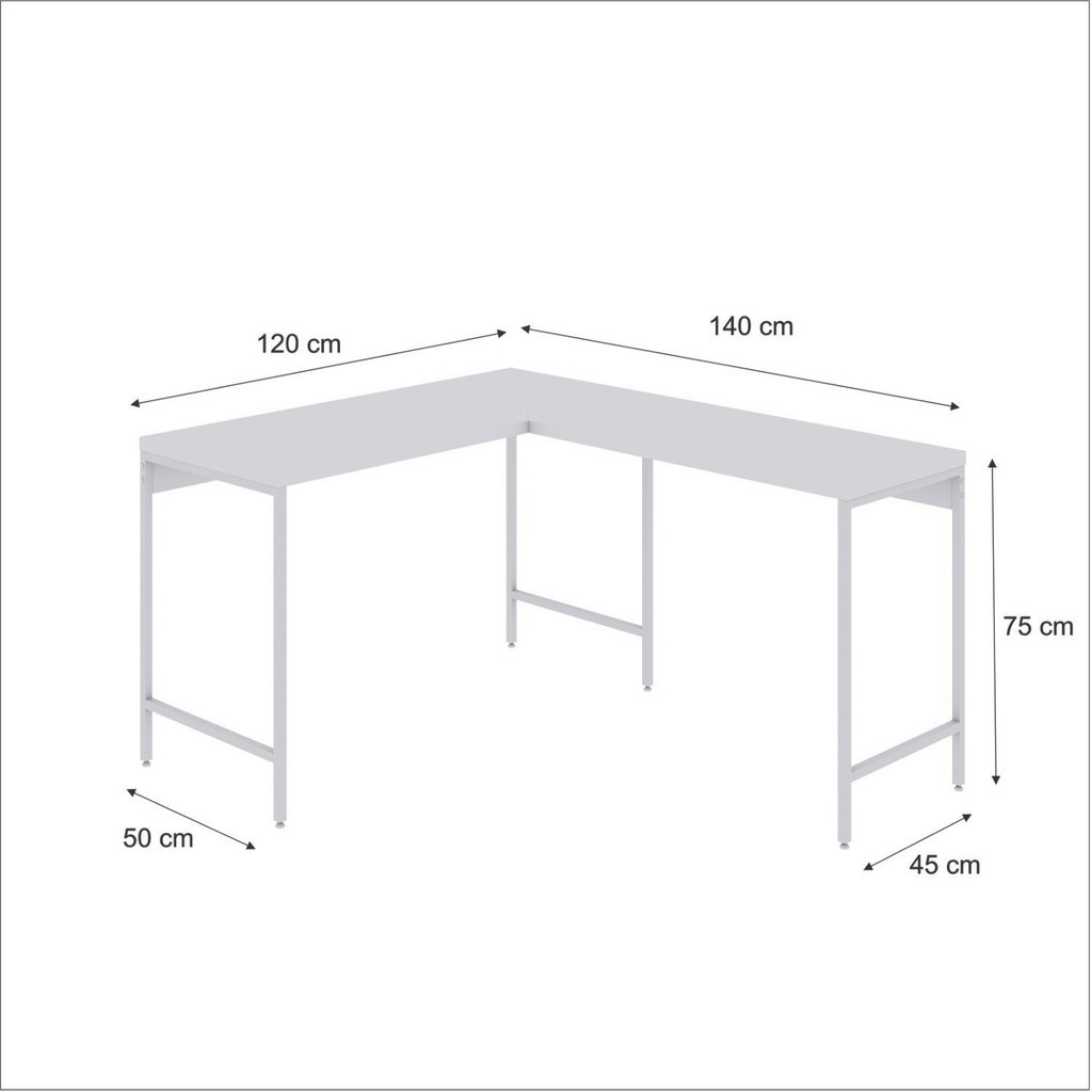 Escrivaninha Mesa Escritório em L Estilo Industrial 120x140cm Active Branco/Branco Chess