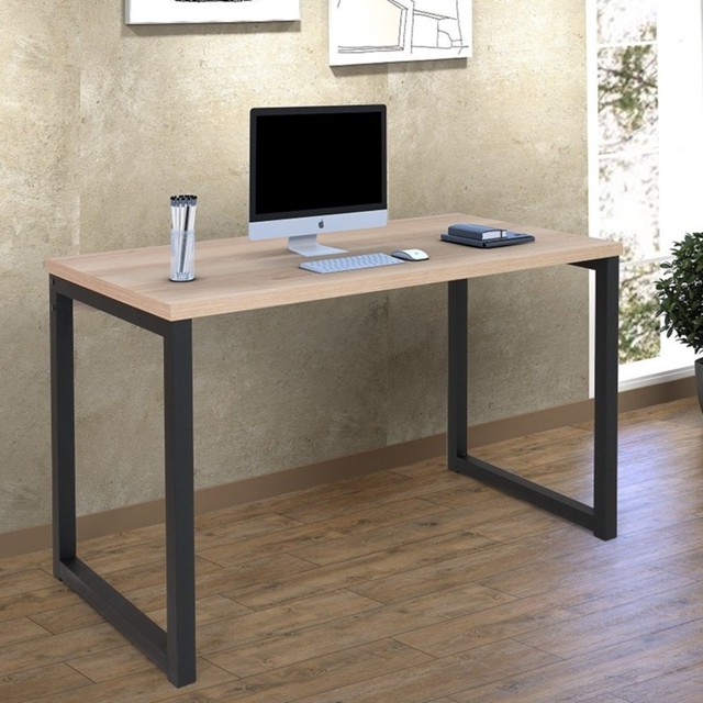 Escrivaninha Mesa Escritório Industrial 120cm Office Preto Fosco/Carvalho