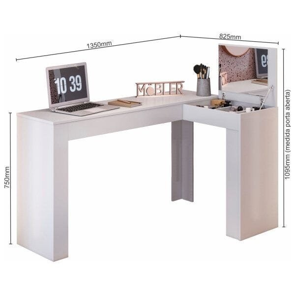 Escrivaninha Mesa Escritório Penteadeira em L Porta Objetos 135x82cm Jade Branco