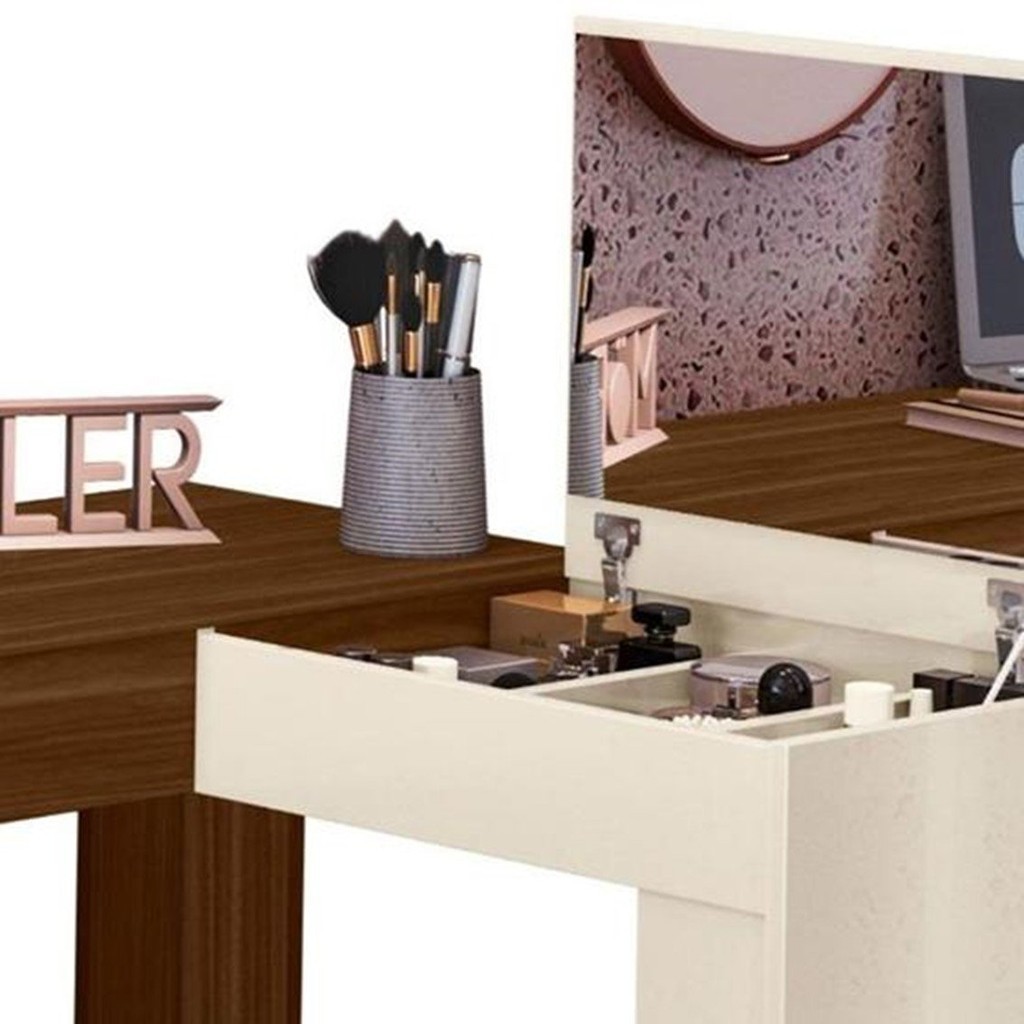 Escrivaninha Mesa Escritório Penteadeira em L Porta Objetos 135x82cm Jade Freijó/Off White