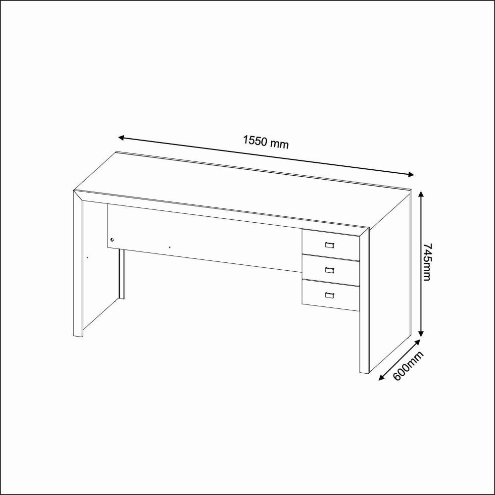 Mesa Escritório Tecnomobili ME4113 apresenta um design inovador proporcionando praticidade e conforto. Possui 3 gavetas, sua montagem pode ser reversível, material em MDP, acabamento em BP, costas na cor do móvel. Proporcionando custo benefício, mas sem perder qualidade. Especificações - Comprimento: 155 cm - Largura: 60 cm - Altura: 74,5 cm - 3 Gavetas - Material: MDP - Cor: Preto - As configurações do seu monitor ou dispositivo móvel podem afetar a tonalidade da cor do produto. Conferir na descrição. - Recomendação de Limpeza: Limpar com pano seco para retirar o pó. Não aplicar produtos abrasivos. - Produtos de Enfeite e Eletrônicos Não Estão Inclusos.