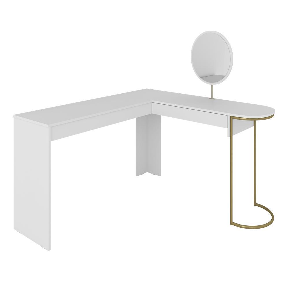 Escrivaninha Penteadeira Em L Com Espelho Mavi Dourado/branco - M.a