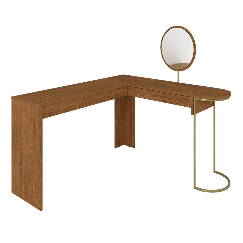 Escrivaninha Penteadeira Em L Com Espelho Mavi Dourado/freijó - M.a