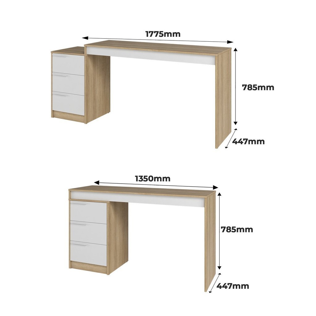Escrivaninha Retangular 3 Gavetas 176,5cm MDP Lamina Mel/Branco Escritório