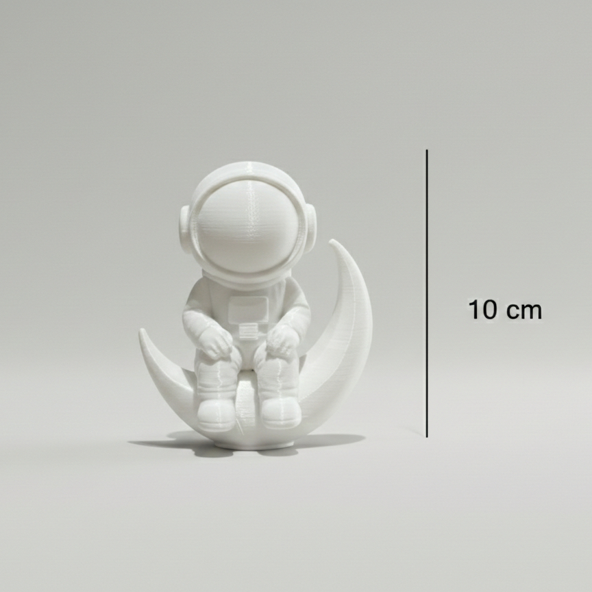 Escultura Astronauta na Lua Decorativa em PLA 10 cm | Decoração Moderna Minimalista Presente Criativo Geek