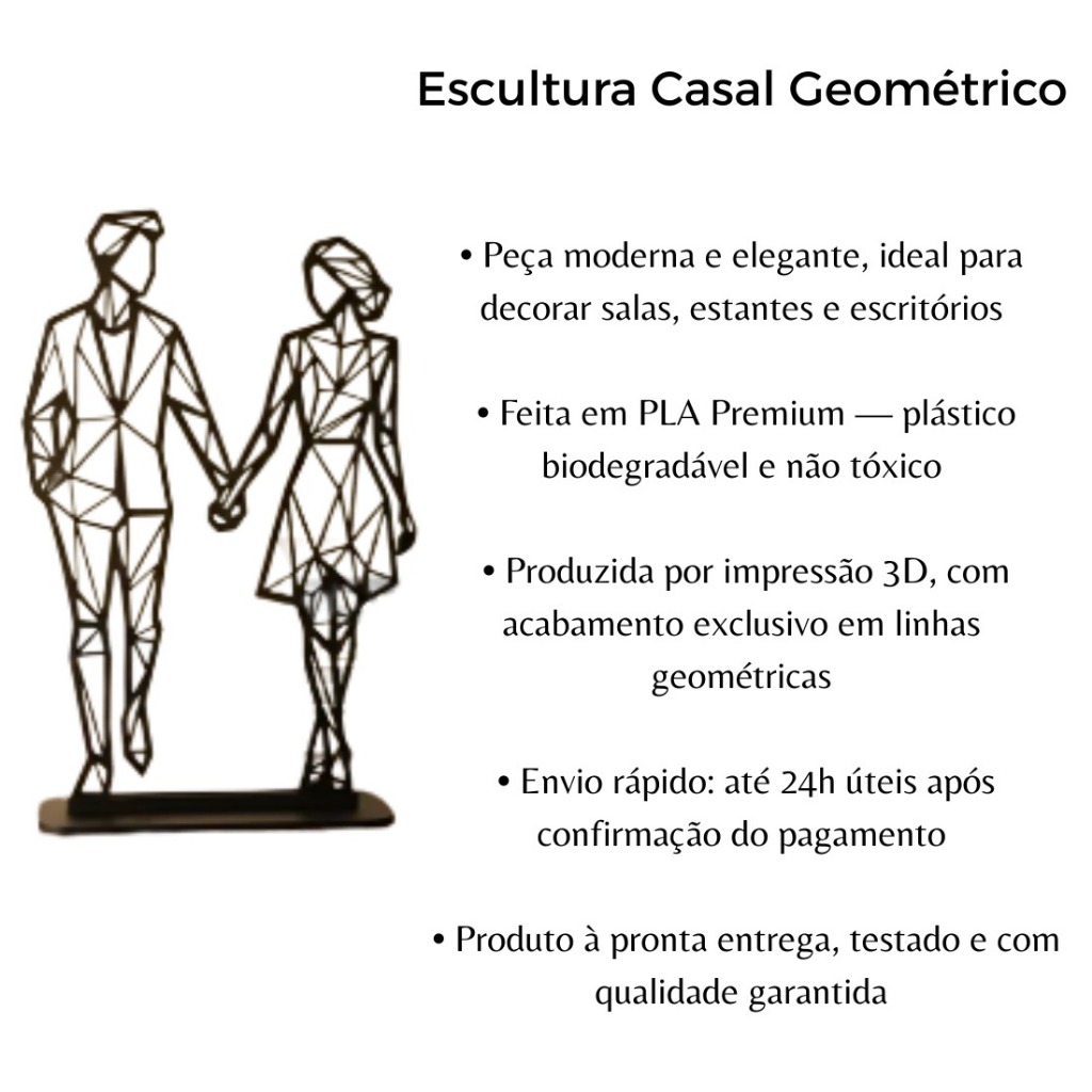 | Escultura Casal Abstrato Decorativo – Enfeite Moderno para Sala ou ... este produto | R$ 22,00 | 23% | 4.8/5 | 5 |