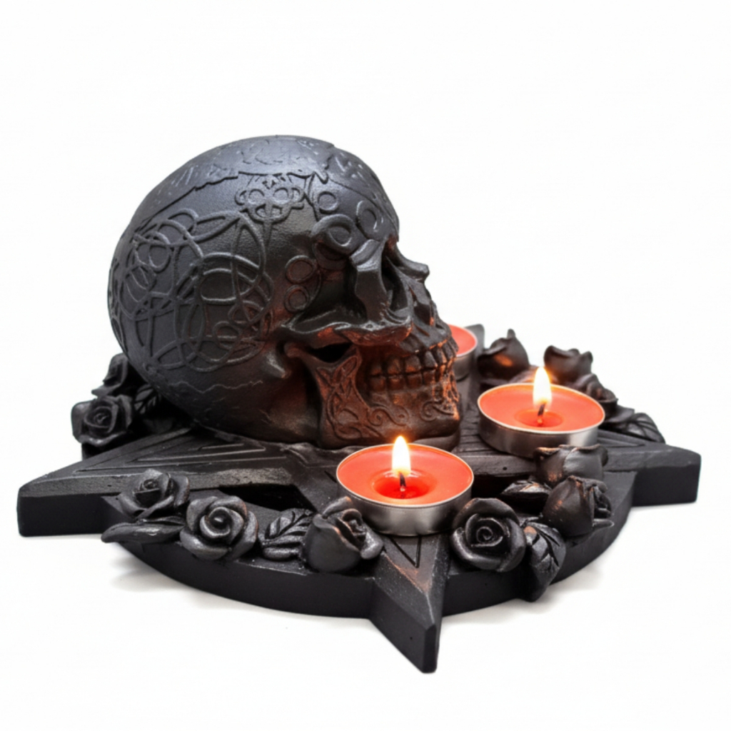 Escultura Caveira Pentagrama Resina 19cm - Decoração Gótica Mística Esotérica Halloween