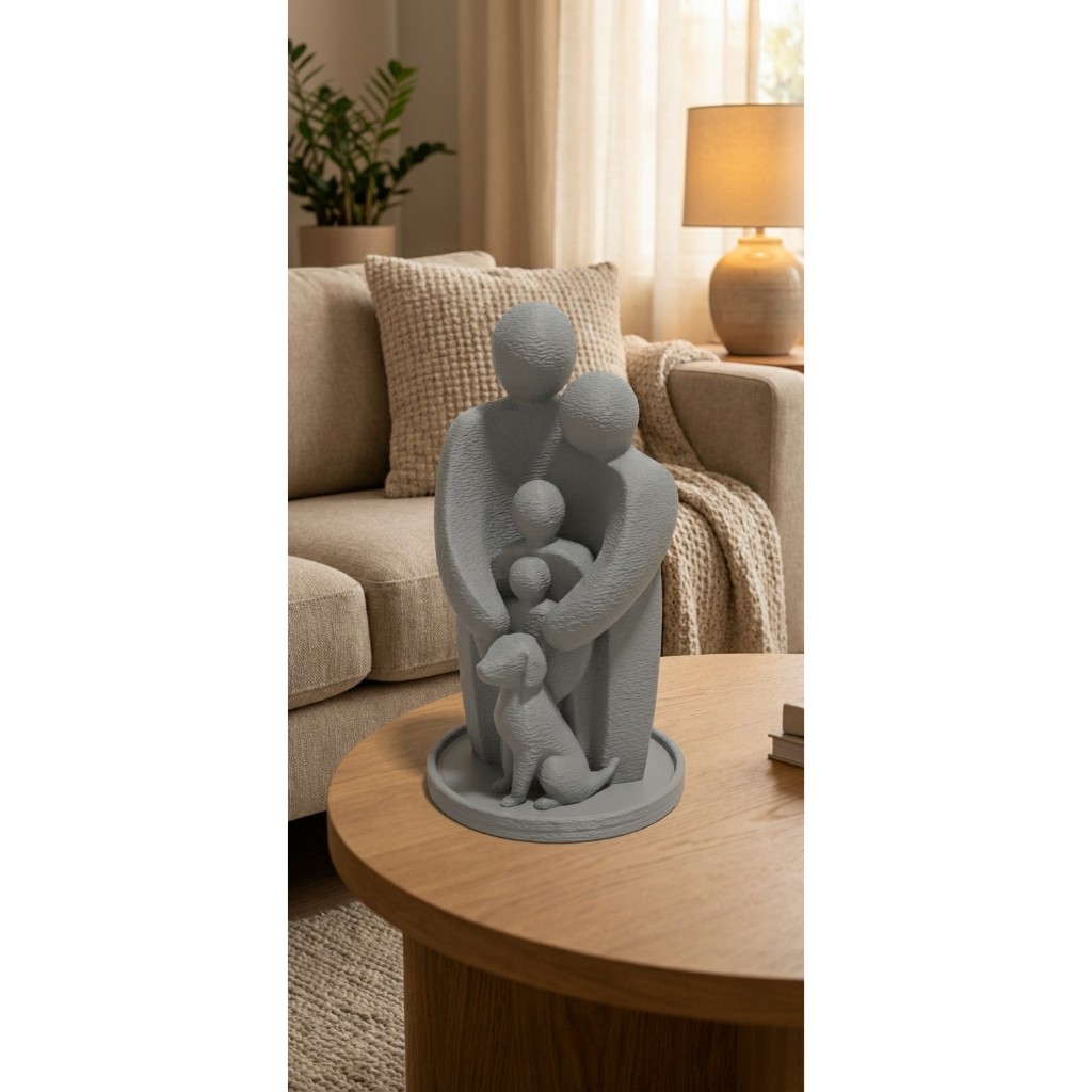 Dê vida ao seu espaço com a encantadora "Escultura de Casal com 2 Filhos e 1 Cão". Esta peça única celebra o amor e a unidade familiar, tornando-se o presente perfeito para aniversários, casamentos ou comemorações especiais, além de ser uma adorável adição à decoração da sua casa. Com um design moderno e as proporções ideais, a escultura destaca-se em qualquer ambiente, trazendo calor e afeto para salas, escritórios ou até mesmo como um toque especial em mesas de centro. Produzida em material PLA durável, esta obra de arte não apenas beleza, mas também resistência, com uma variedade incrível de cores que permitem personalizá-la ao seu gosto. Se você deseja cativar e emocionar, esta escultura é a escolha ideal para expressar seus sentimentos de forma tangível. **Especificações Técnicas:** - Peso: 93.7g - Material: PLA - Dimensões: Largura: 83mm | Comprimento: 81mm | Altura: 150mm - Cores Disponíveis: Preto, Bege, Marrom, Pêssego, Coral, Cinza, Transparente, Dourado, Verde, Prata, Laranja, Silk Verde Menta + Roxo, Caucasiano, Prateado, Rosa Pink, Cinza, Dourado, Amarelo, Azul Claro, Branco, Salmão, Verde Limão, Azul, Turquesa, Verde Claro, Vermelho, Roxo, Lilás, Vinho, Magenta, Ciano, Rosa, Bronze ⚠️ **Observações Importantes:** • **Sobre o Processo de Fabricação:** Este produto é confeccionado em plástico PLA por meio de impressão 3D. Por se tratar de um processo de fabricação aditiva, pequenas imperfeições podem estar presentes, como linhas de camada visíveis ou variações mínimas na superfície. Essas características são inerentes ao processo de impressão 3D e não comprometem a funcionalidade do produto. • **Sobre as Cores:** Pode haver variação na tonalidade das cores apresentadas devido a diferenças entre lotes de material. Cada bobina de filamento pode apresentar pequenas variações de tom, mesmo sendo da mesma cor especificada pelo fabricante. Estas variações são naturais e não constituem defeito no produto. Para mais informações sobre a tonalidade atual de uma determinada cor deste item, nos envie uma mensagem.