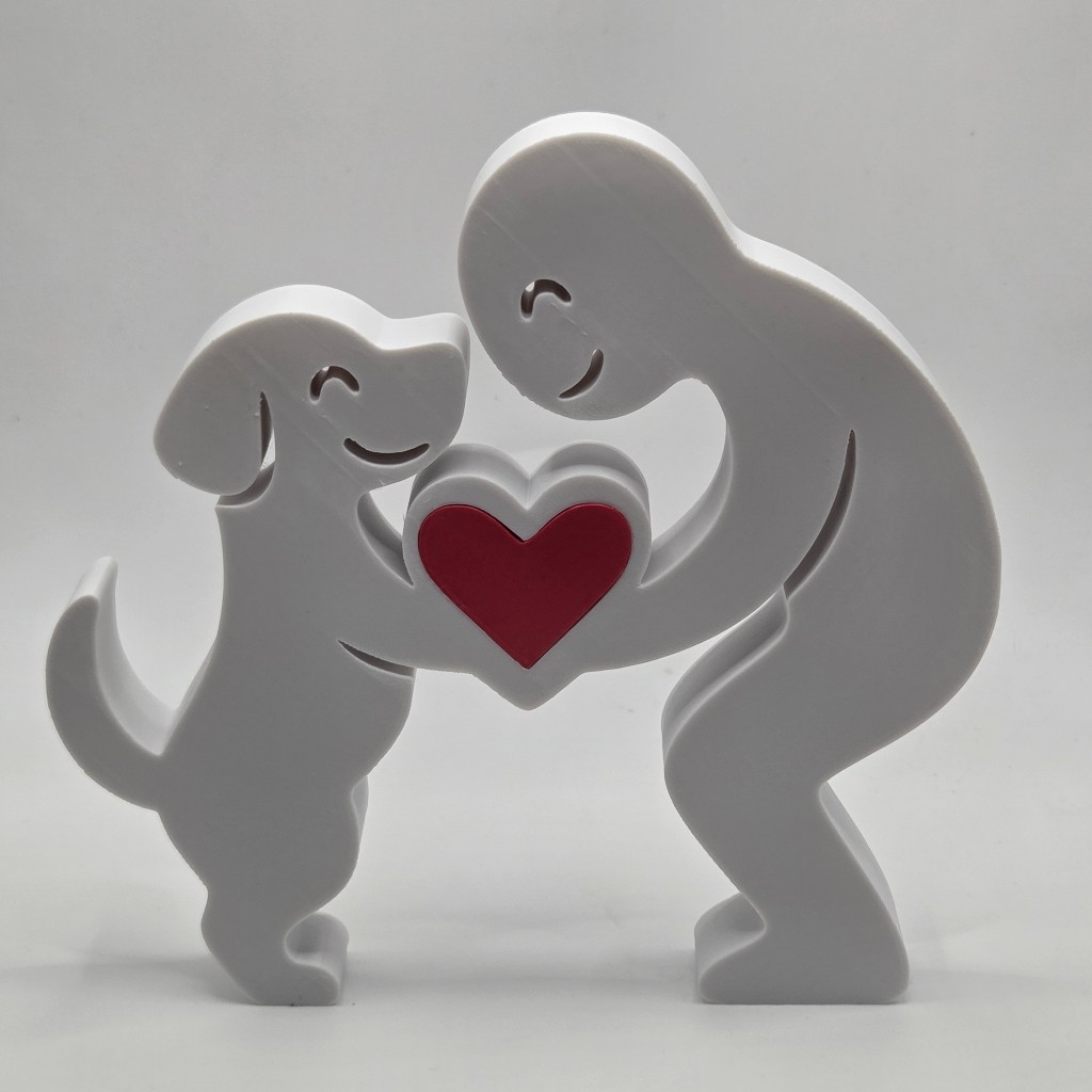 Escultura Decorativa Amor Pet Humano e Cachorro com Coração para Decoração Presente Pet Lovers