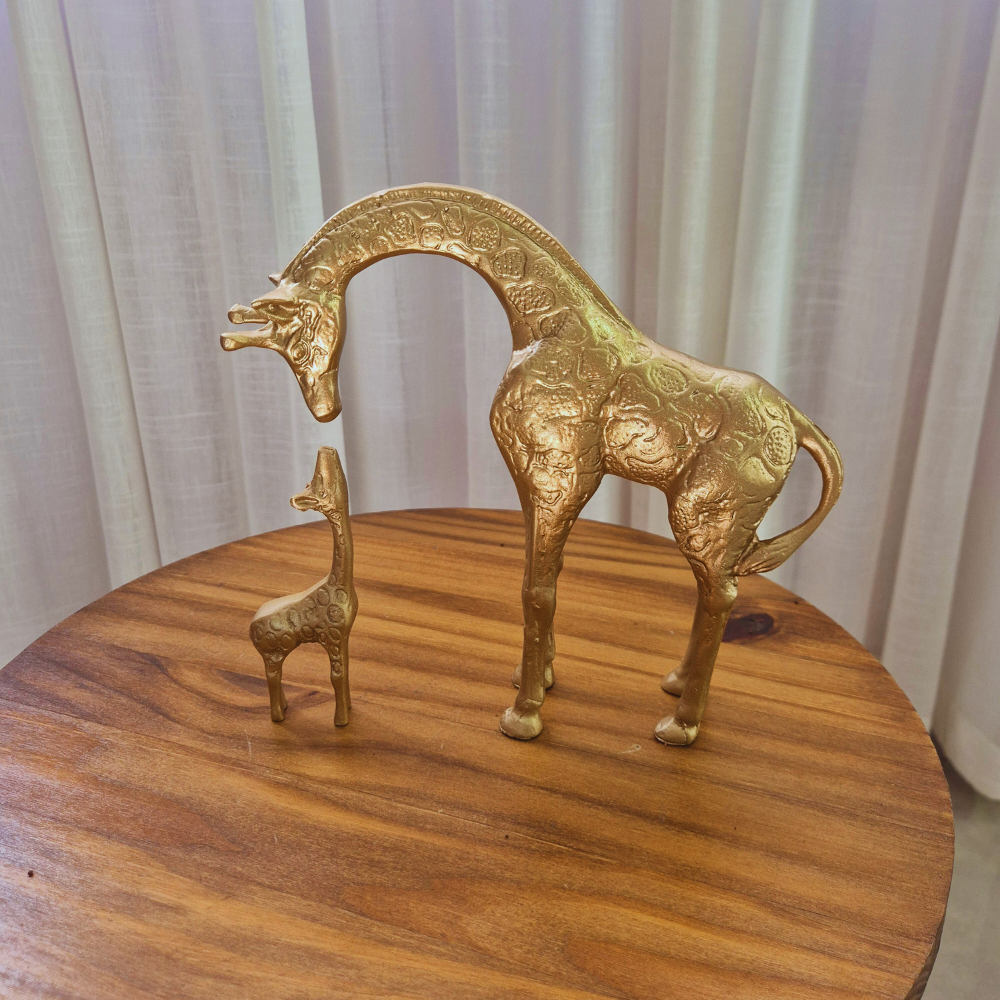 Escultura Decorativa Dupla de Girafa Luxo Enfeite Rack Sala Escritório