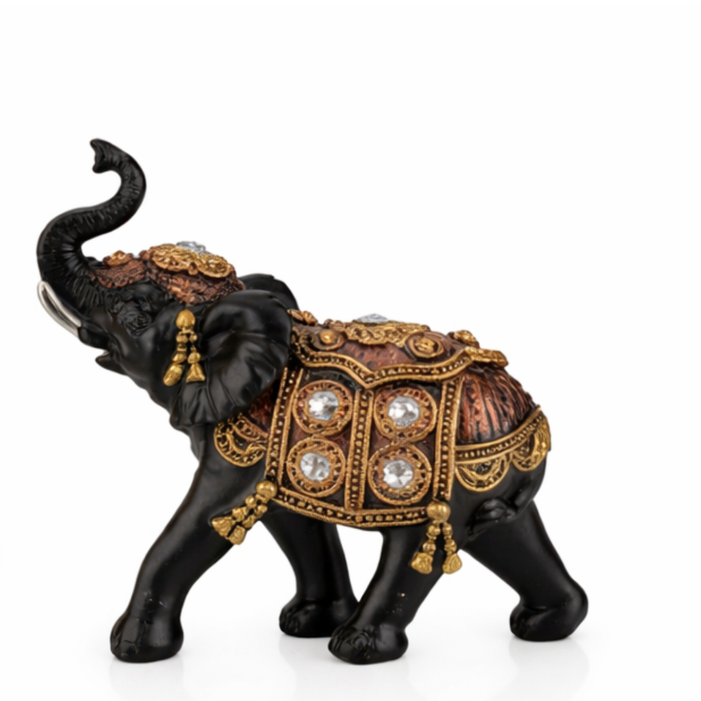 Descrição 01- Elefante em Resina Descubra a elegância do Elefante Dourado ou Preto , uma peça impressionante que combina arte e sofisticação. Com detalhes delicados e incrustações de cristal, este elemento decorativo traz um toque luxuoso a qualquer ambiente. Perfeito para ser o centro das atenções na sua sala de estar ou em um escritório elegante, ele representa prosperidade e sorte. Adicione um toque de glamour à sua decoração com esta obra-prima.