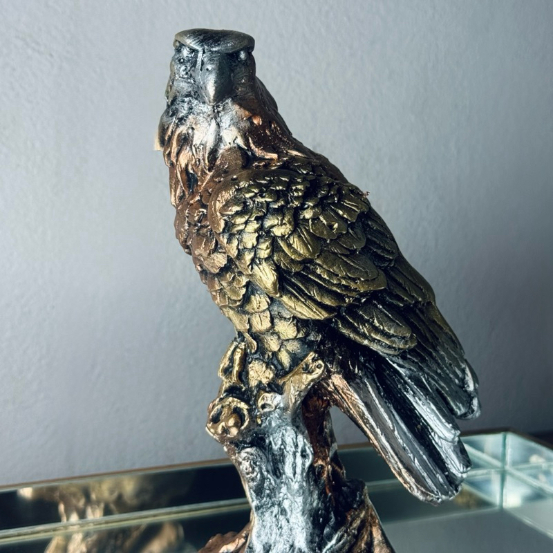 Escultura estatua Decorativa de Águia Gavião Falcão Força Poder Elegância Ambiente Sala Decoração
