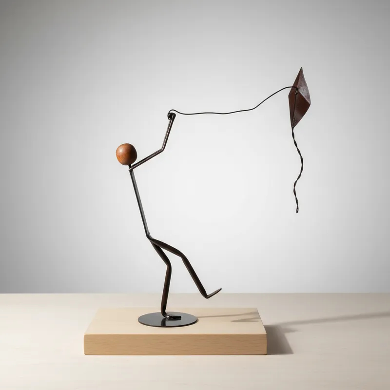 Escultura Estátua Homem Soltando Pipa Rústico Em Ferro Luxo