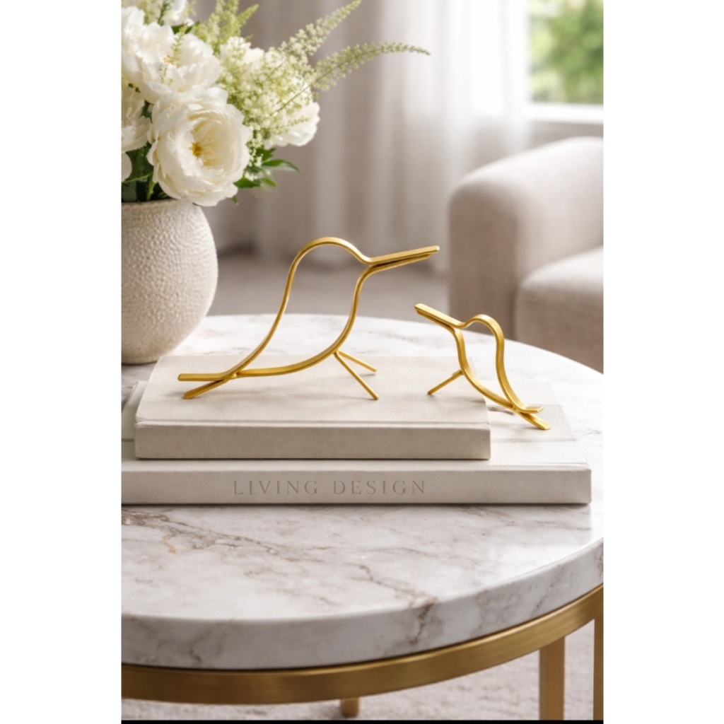 Escultura minimalista enfeite kit pássaros decorativos em metal dourado e preto