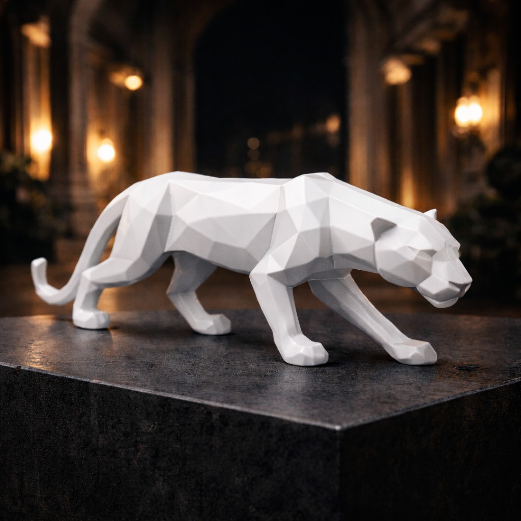 Escultura Pantera Negra Geométrica Estatueta De Decoração Casa Estatua Rack Sala Quarto Preto Branco