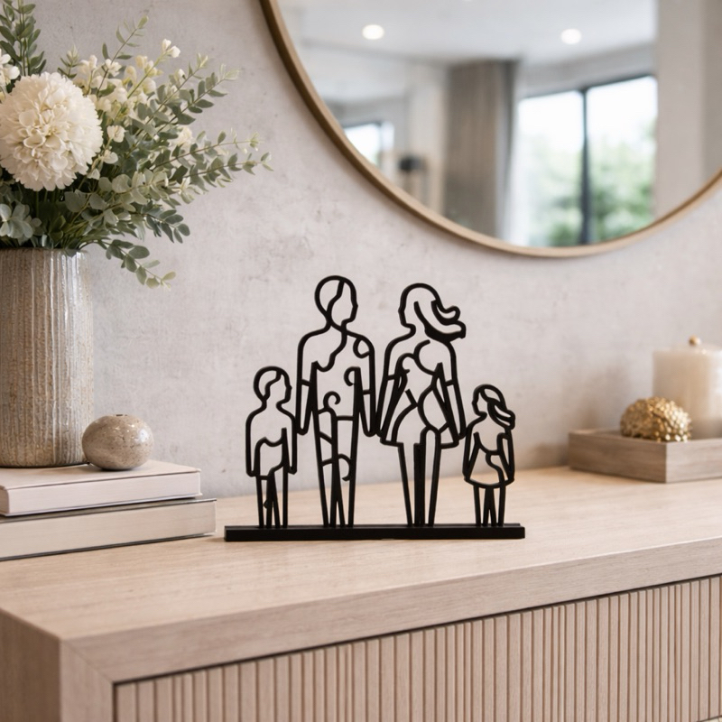 Escultura Personalizada Família Moderna Decorativa Minimalista Preta Decoração Sala Presente