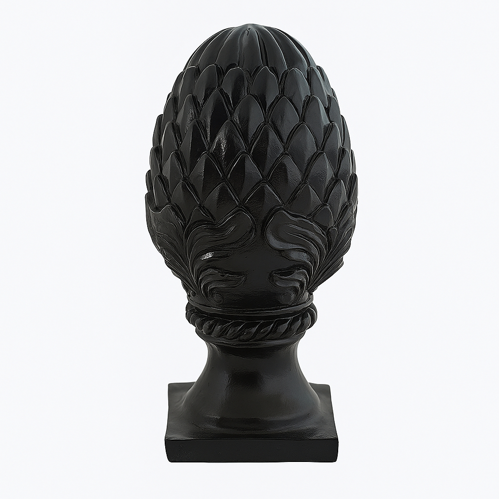 Escultura Pinha Preta Peça Decorativa Para Sala 23Cm Luxo Decoração