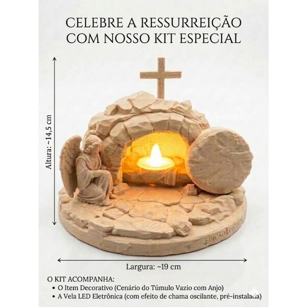 Escultura ressureição de Cristo Ele Vive Túmulo vázio decorativa páscoa led