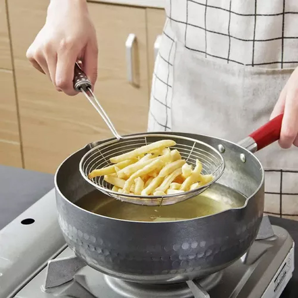 Escumadeira Fritura Aço Inox 33cm Batata Pastel Resistente Utensilio de Cozinha