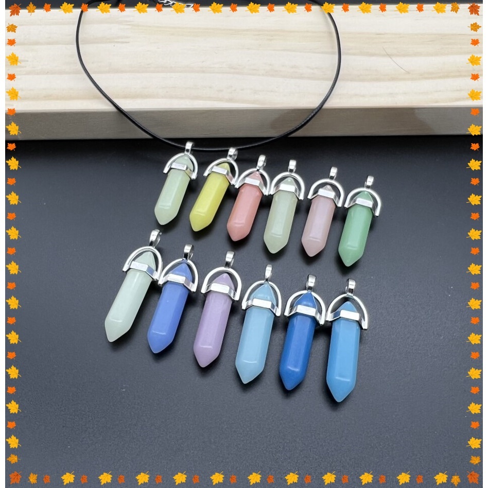 Escuro luminoso pedra natural fluorescente coluna hexagonal colar couro colar que Brilha no Escuro