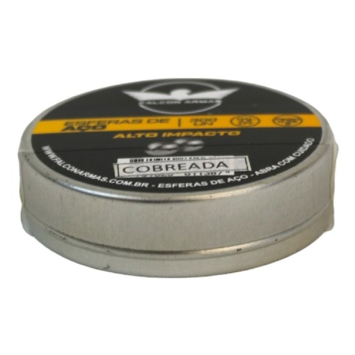 Esfera de aço Falcon Armas 4,5mm 0,35g - Lata com 300 Un. Estas esferas possuem alto nível de fabricação com tecnologia de ponta que envolvem extra polimento e banho em óleo mineral para que não enferrugem e resultem em total desempenho no equipamento. Esferas cobreadas, para que não agrida o cano da arma, pois o cobre é um material mais maleável que o aço, não entrando em contato direto com o metal do cano. Trata-se de uma munição perfeita, de alta eficiência, compatível com rifles, pistolas e revolveres de pressão. Munição indicada para armas com cano sem raias. Adquira já as suas esferas de aço premium com o melhor custo na loja que é especializada em armas. CARACTERÍSTICAS: - Fabricante: Falcon Armas. - Modelo: BB Steel Cobreada - Calibre: 4,5mm - Peso esfera: 0.35g - Aplicação: Rifles, Pistolas e Revolveres de Pressão - Material Esfera: Aço Cobreado - Acabamento: Extra polimento - Circunferência: Perfeita - Banho: Em óleo mineral - NÃO COMPATÍVEL COM CARABINAS DE PRESSÃO QUE NECESSITEM DE QUEBRA DO CANO. ITENS INCLUSOS: 1x Lata com 300 esferas Cobreadas FOTO MERAMENTE ILUSTRATIVA