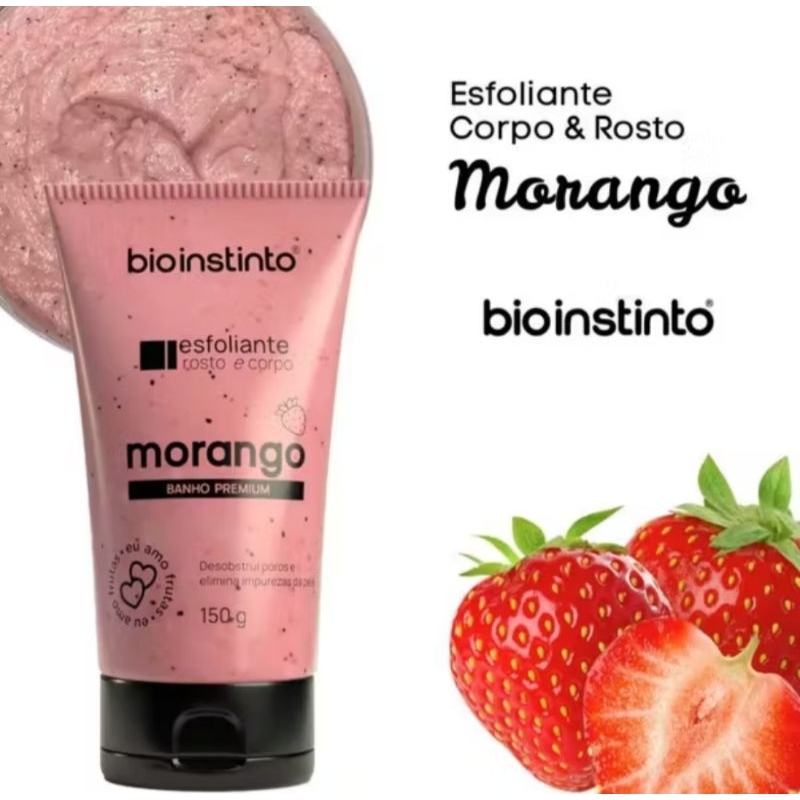 🌿 Esfoliante Rosto e Corpo Bio Instinto 150g – Banho Premium O Esfoliante Bio Instinto Rosto e Corpo foi desenvolvido para promover limpeza profunda, remoção de células mortas e uma pele muito mais macia, hidratada e perfumada desde a primeira aplicação. Ideal para quem busca um banho premium, com fragrâncias frutadas irresistíveis e sensação de pele renovada. ✨ BENEFÍCIOS PRINCIPAIS ✔ Esfoliação suave e eficaz ✔ Remove impurezas e células mortas ✔ Auxilia na renovação da pele ✔ Deixa a pele macia, sedosa e perfumada ✔ Pode ser usado no rosto e no corpo ✔ Textura cremosa com partículas esfoliantes ✔ Ideal para uso semanal 🍓 FRAGRÂNCIAS DISPONÍVEIS Morango Pitaya Maracujá Uva Melancia Framboesa (Envio conforme disponibilidade ou seleção do anúncio) 🧴 MODO DE USO Aplique o esfoliante sobre a pele úmida Massageie suavemente com movimentos circulares Enxágue em seguida Utilize de 2 a 3 vezes por semana 📦 INFORMAÇÕES DO PRODUTO Marca: Bio Instinto Tipo: Esfoliante Rosto e Corpo Peso: 150g Linha: Banho Premium Indicação: Todos os tipos de pele