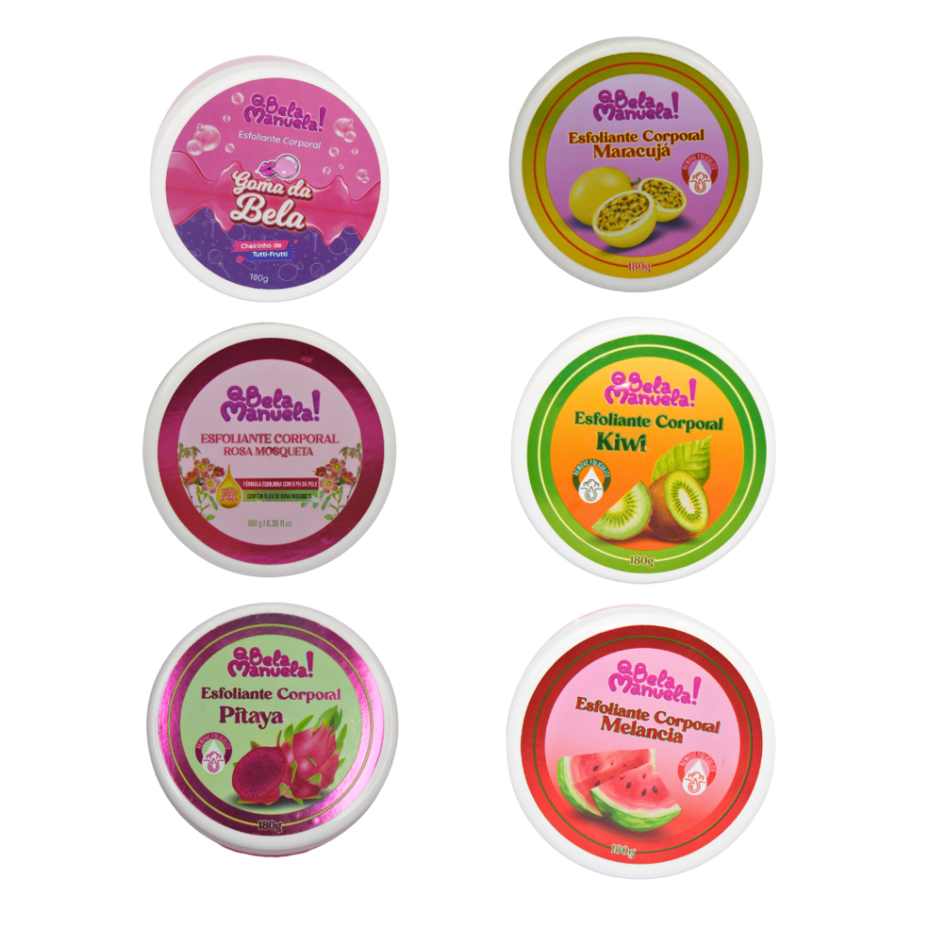 Os Esfoliantes Corporais Q Bela Manuela possuem fragrâncias incríveis inspiradas em frutas, além disso, deixa sua pele limpa, hidratada e macia, e ajuda a tratar a foliculite. - Pele limpa, macia e hidratada - Ação Hidratante - Previne e trata a foliculite - Esfolia sem agredir a pele - Não testado em animais Adquira já o seu! E sinta-se extremamente cheirosa com os esfoliantes Q Bela Manuela!