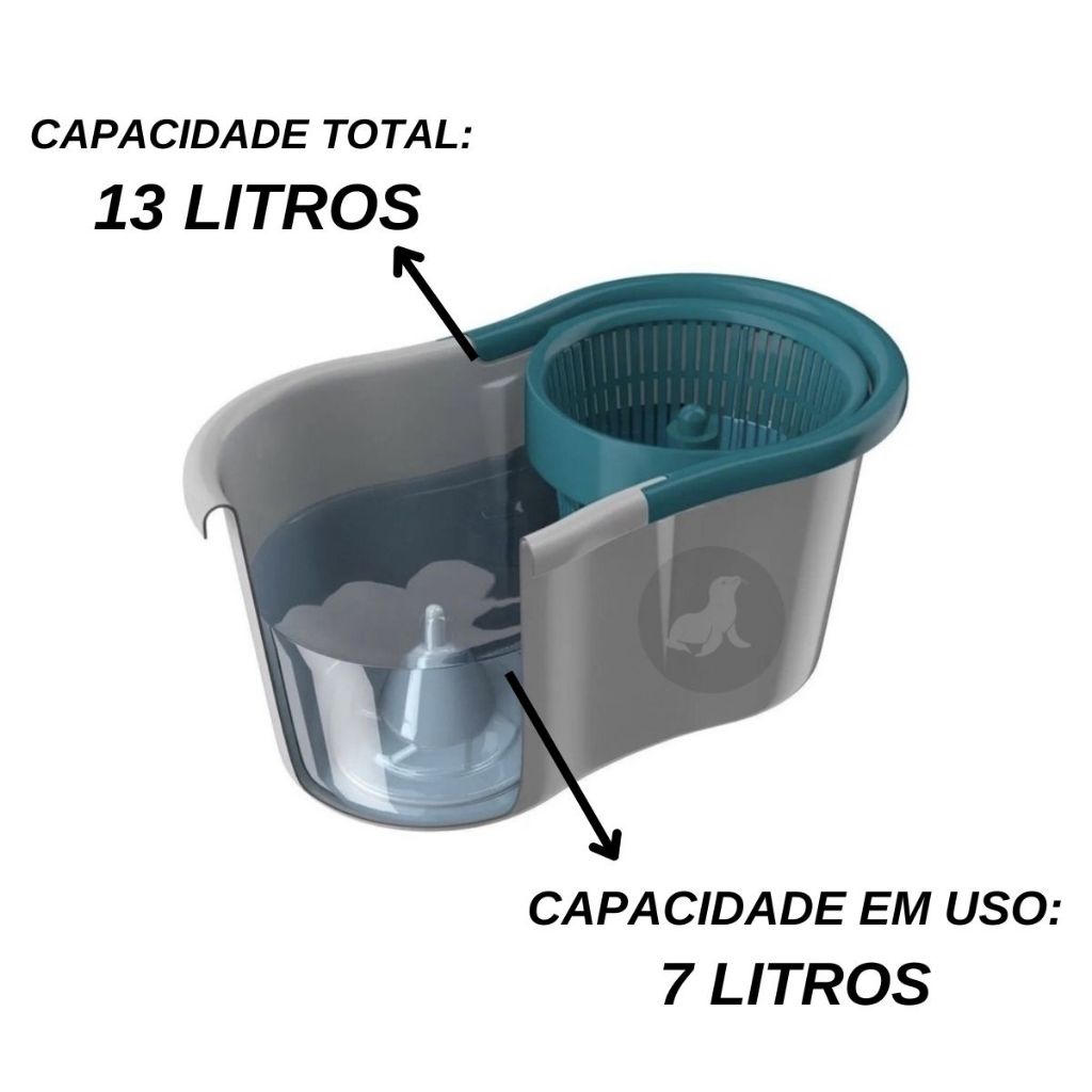 > Mop Esfregão Giratório com Balde e Refil: - Perfeito para você que busca praticidade e eficiência no dia a dia com a limpeza da casa! - Substitui perfeitamente um rodo convencional com um pano de chão. Não será mais necessário utilizar rodo, nem torcer panos molhados, o Mop possui uma cesta giratória que facilita a higienização do esfregão. Além de não precisar entrar em contato diretamente com produtos químicos. ESPECIFICAÇÕES: - Capacidade: 13 litros - Cabo extensível de 85cm até 120cm - Material: Aço inox, Microfibra e Polipropileno - Dimensões: 45cm comprimento x 26cm largura x 22cm altura - Componentes: Balde, Cesta Giratória, Cabo extensor, Esfregão Refil - Esfregão giratório até 180º Ideal para pisos frios, sintéticos ou de madeira CONTÉM: - 01 Balde com cesto plástico 13L ou 12L - 01 Cabo inox de 120cm - 01 Esfregão de microfibra 16cm ATENÇÃO: O ITEM PODE TER VARIAÇÃO DE 12 OU 13 LITROS DEPENDENDO DA DISPONIBILIDADE EM ESTOQUE.