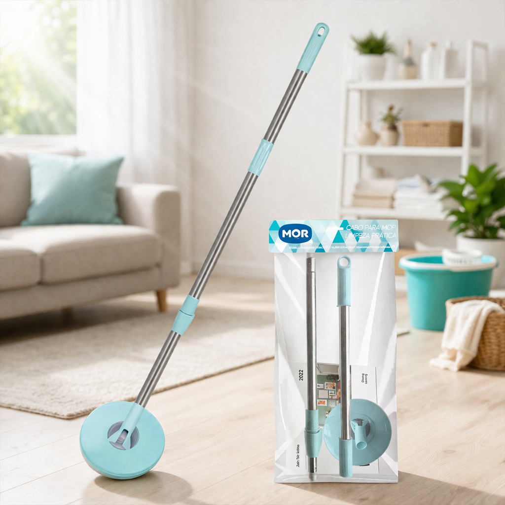 Cabo e Esfregão para Mop Limpeza Prática O Cabo para Mop Limpeza Prática é vendido de forma unitária, sendo compatível com todos os esfregões Mop da Mor, com exceção do Esfregão Mop Pocket Limpeza Prática (código 8294), e devem ser trocados sempre que estiverem gastos. O produto é articulável até 180°. Permite que você alcance até as áreas superficiais mais difíceis, limpando a sujeira acumulada nos cantos e embaixo dos móveis. Especificações: Informações importantes Medidas: Esfregão ajuste 1 - Ø16,5cm x 98cm Esfregão ajuste 2 - Ø16,5cm x 1,23m MOR