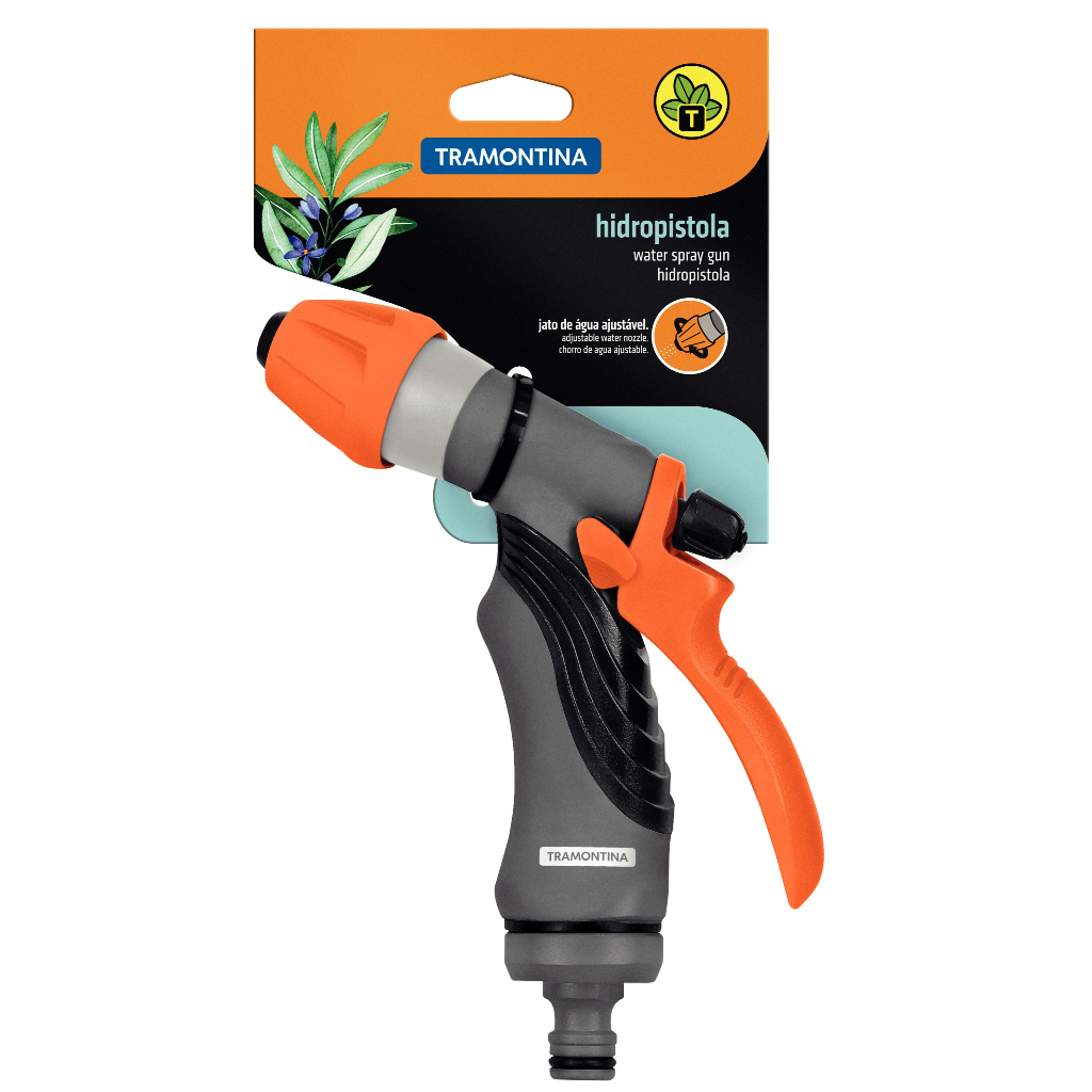 Esguicho Hidropistola com Jato Regulável Tramontina 78520501 Descrição do Produto: - Um jardim bem cuidado nos dá mais vontade de aproveitar os momentos ao ar livre. Com a Hidropistola para Engate Rápido Tramontina com Jato Controlável você vai ter conforto e bem-estar em um só produto. Perfeita para uso na jardinagem ou para horta doméstica, ela é produzida em plástico e possui cabo anatômico com revestimento emborrachado. Características: - Produto fabricado com matéria-prima de alta qualidade proporcionando uma irrigação precisa e confiável; - Possui prático sistema de regulagem do fluxo d'água através do regulador frontal; - A hidropistola é conectada em mangueiras de 1/2", 5/8" e 3/4" através de sistema de engate rápido; - Trava permite trancar a vazão de água desejada, prevenindo cansaço da mão; - Regulagem da vazão d'água acessível na própria mão; - Produto comercializado em blister/cartela. Dados Técnicos: - Marca: Tramontina; - Referência: 78520501; - Cor: Laranja e cinza; - Peso: 0,17 kg; - Altura: 15 cm; - Diâmetro: 4 cm; - Comprimento: 18 cm; - Dimensões da Embalagem: 200x95x45 mm. Recomendações de Uso: - A hidropistola é utilizada para irrigar o jardim ou a horta doméstica; - A hidropistola é a ferramenta da ponta do sistema; - Pode ser conectados em mangueiras com engate rápido de 1/2", 3/4" ou 5/8"; - Água: pode faltar. Não desperdice; - Para descarte dos produtos e embalagens siga as orientações de reciclagem vigentes. Componentes Inclusos na Embalagem: - 01 Esguicho Hidropistola com Jato Regulável Tramontina 78520501.