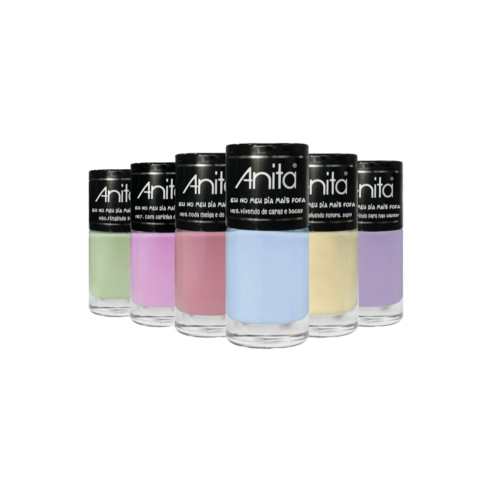 Com acabamento cremoso, brilho intenso, alta durabilidade e pigmentação, os esmaltes Anita entregam qualidade impecável. Agora é a sua vez de escolher a sua cor favorita e mostrar ao mundo a sua versão mais fofa! Modo de Uso: Antes de aplicar o esmalte, prepare as unhas lixando e removendo qualquer resíduo. Aplique uma base de unhas para proteger e prolongar a durabilidade do esmalte. Passe uma camada fina e espere secar. Para uma cor mais intensa, aplique uma segunda camada. Finalize com uma camada de extra brilho para aumentar a durabilidade e o acabamento.