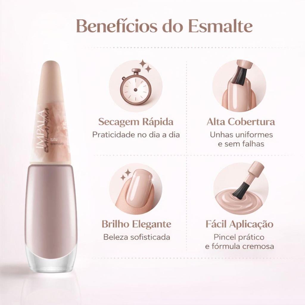 | Esmalte Cremoso Impala Bailarina Tutu 7,5ml este produto | R$ 11,90 | — | 5.0/5 | — |