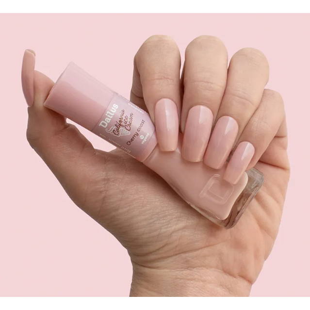 Esmalte Dailus California Ice Cream Cherry Coast 8ml. Tom rosa pastel delicado com acabamento cremoso. Alta cobertura, secagem rápida e longa duração. Ideal para unhas suaves, românticas e cheias de estilo. Fácil de aplicar e com brilho encantador.