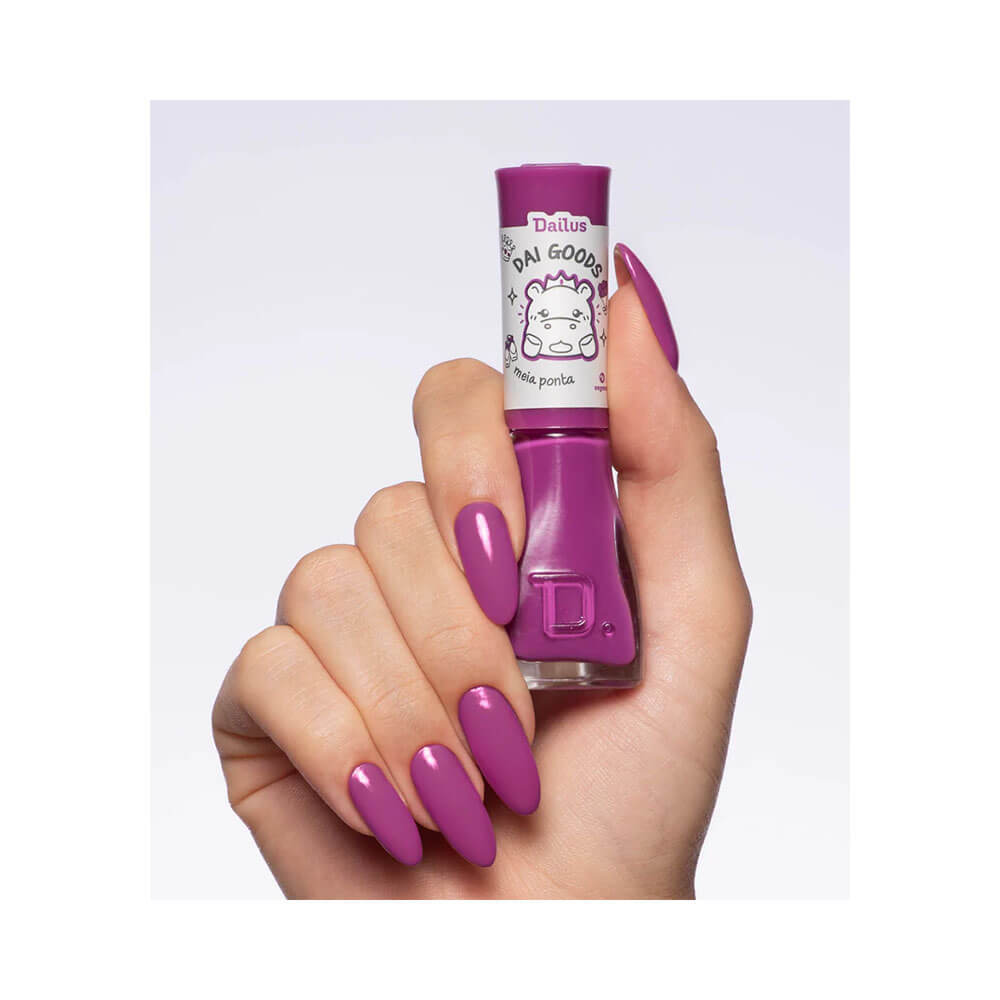 Inspirada no gigante sucesso dos famosos livrinhos de colorir que invadiram a internet e na tendência #cozycoloring, chegou a hora de despertar sua imaginação para pintar e desenhar nas unhas com a coleção de esmaltes DAI GOODS! Se encante e estimule a criatividade com 9 vidrinhos cremosos superdivertidos, baseados em 3 irreverentes cenários para colorir – cada um com um personagem carismático diferente! Fique apaixonada pelo nosso simpático sapinho, pela nossa hipopótama superfofa e pela charmosa lhama! E a qualidade deles você já conhece: Brilho intenso, longa duração e secagem rápida. Embarque nessa aventura com a gente! Pronta pra arrasar na aula de ballet com a nossa divertida hipopótama dançarina e treinar pro seu grande espetáculo? Então calce sua sapatilha de Meia Ponta e conheça esse vidrinho roxo encantador! Com força, foco e determinação você consegue tudo que quiser! Solte a imaginação pra colorir com DAI GOODS e conheça ainda as cores Fru Fru e Bailarina, também do cenário Aula de Ballet! E não deixe de descobrir nossos outros dois trios da coleção: Piquenique no Parque e Tarde na Praia.