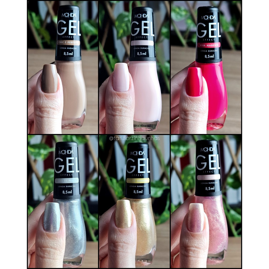 📢 LANÇAMENTO – MOHDA GEL EFFECT | 6 NOVAS CORES Chegaram as novas cores de GEL EFFECT são 6 cores modernas, indicadas para o final de ano e de longa duração. Esse lançamento reforça nossa presença no mercado de efeito gel sem cabine, especialmente agora, com a alta procura por fórmulas seguras e o debate sobre componentes proibidos nos esmaltes que secam em UV. Diferenciais do Mohda Gel Effect ✔ Brilho intenso tipo cabine ✔ Secagem rápida, sem luz UV ✔ Duração média de até 10 dias ✔ Remoção fácil como esmalte comum ✔ Sistema em 2 passos: * Passo 1: Esmalte Gel Effect (cor) * Passo 2: Top Coat Gel Effect (garante o brilho e a duração) Novas cores 🌸 Rosa Natural – nude rosado natural clássico ⭐ Brilho Dourado – dourado intenso e iluminado (metálico) 🩶 Luz de Prata – prata moderno metalizado 🎨 Viva Magenta – pink vibrante e marcante 🌅 Céu Iluminado – rosê perolado glow 🟤 Chic e Perfeito – nude quente sofisticado PERGUNTAS FREQUENTES 1. Preciso de cabine para secar? Não! O produto possui efeito gel com secagem ao ar livre, sem necessidade de cabine. 2. Ele pode ser usado sobre outro esmalte? Sim! Pode ser aplicado sobre qualquer esmalte para dar acabamento efeito gel. 3. O esmalte é hipoalergênico? Não. A fórmula não é hipoalergênica. 4. Qual a durabilidade média nas unhas? Com uso correto, pode durar em média até 10 dias. 5. Esse anúncio é referente a quantas unidades? Este anúncio é referente a 01 unidade do Esmalte Mohda Efeito Gel.