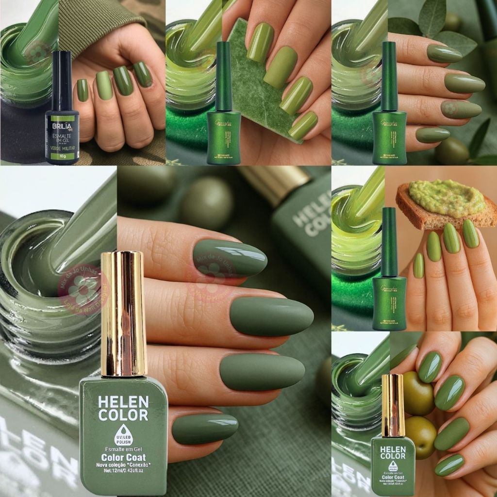 Esmalte em gel Verde Oliva Abacate Pistache Militar Helen Color Real Love Tons Fechados